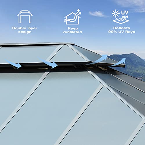 ?????Double Roof Design?The double roof ventilated roof of this hardtop gazebo can provide the best airflow and comfort, ensuring unparalleled stability under high wind conditions. The unique design can also give you a hint of coolness in summer.