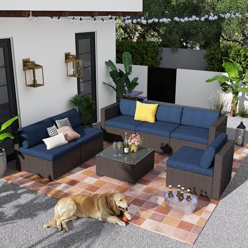 Sturdy&Durable: Solid metal structure make it super safe to sit in the sofa set. Added bars for the frame enhance the sturdiness and allow the sofa to support heavy people about 400lbs. Adjustable feet make it steady on uneven surfaces. PE Wicker is strong enough to survive inclement weather and guarantee the set has a long service life. Note: cushions are water-proof, When you don' t use it, advise you to take cushions inside or buy a cover for longer service time.