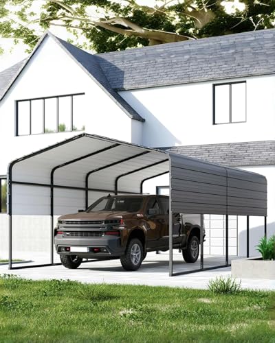 ?Multifunctional Design?The outdoor metal carport with a heavy-duty galvanized canopy and garage car shelter provides plenty of space for vehicles and trucks. It can act as a carport canopy and a shelter for outdoor activities such as parties, weddings, and trade shows. The gray finish gives your backyard an elegant and stylish appearance. Customize your outdoor life now.