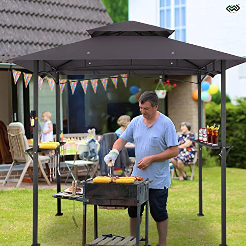 MEWAY 8x5 Outdoor Grill Gazebo Canopy, BBQ Canopy Gazebo Tent for Patio,Barbecue,Grey