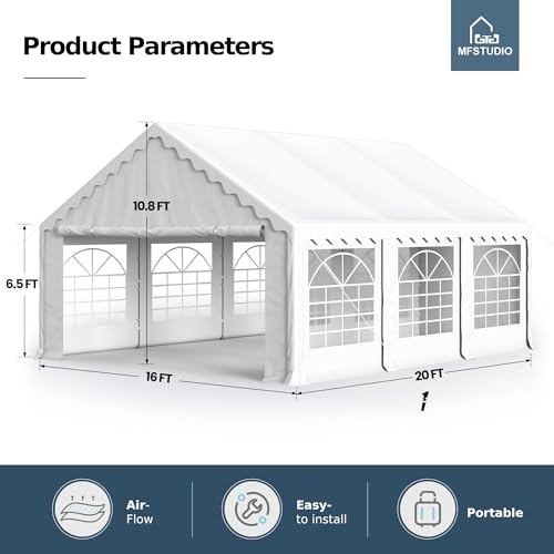 MFSTUDIO 16'x20' Party Tent, Outdoor Heavy Duty Party Tents with Removable Sidewalls, Large Canopy Tent Shelter for Outdoor Events Wedding Birthday, White