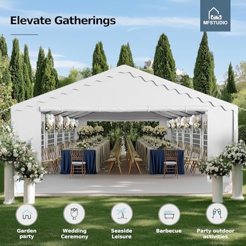 Versatile Functionality: Perfectly combines practicality and fashion. Featuring ample space no matter your needs, our large party tent offers you options. Place it outside as an area for wedding receptions, graduation parties, or a big backyard barbeque. (Please do not use it when the wind is strong)