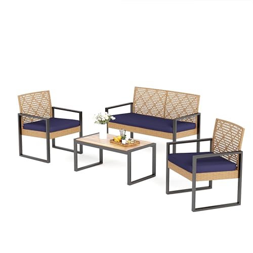 MODERN SOFA SET - MFSTUDIO 4 piece patio wicker conversation furniture set small includes 1 rattan loveseat, 2 wicker chairs and a acacia wood table. You can flexibly combine them according to the size and preference of the site, whether it's a compact balcony or a spacious backyard