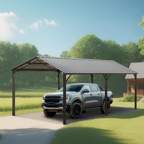 Outdoor Heavy Duty Carport: Our 10x20 ft carport features an upgraded corrugated galvanized steel roof and a robust iron frame made from powder-coated, anti-rust square pipes. It is rust-resistant, strong, and durable. With its solid structural design and high-quality materials, this carport is built to withstand any weather. Rest easy knowing that this outdoor carport garage shelter awning will provide excellent protection for your vehicle from the elements