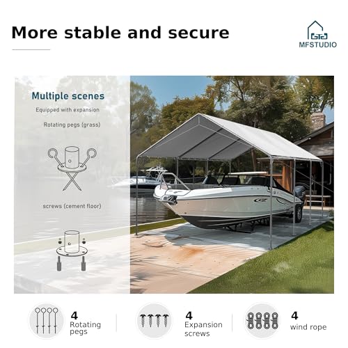 Spacious Shelter Design: 12x20ft carport offer ample space,accommodates multiple type vehicles. Park your cars, trucks, or boats with ease. Whether use for your home, business, or outdoor events, this shelter serves all your needs effortlessly ?