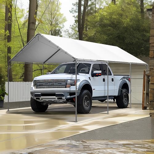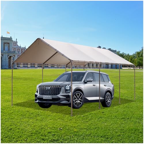 Durable and Weather-Resistant: Our carport canopy top is made with high-quality 150g Polyethylene fabric that is waterproof, tear-proof, and UV-resistant, canopy frame built with sturdy galvanized steel pipes, The joint adopts a spray molding process that prevents chipping, peeling, rust, and corrosion ?