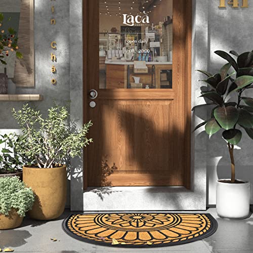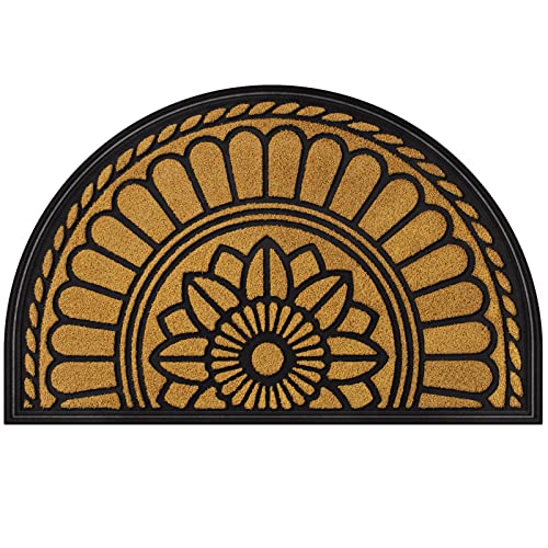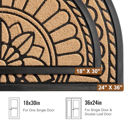 ?LOW-PROFILE&NON SLIP?: MIBAO half-circle mat measures 18"×30", features 1/2" thick, low-profile design ideal for low-clearing doors or entryways, won't stuck the door. The raised pattern anti slip backing made the door mats can grip on indoor outdoor floor type. Pets and kids running and sprinting safely in daily playing, and won't slip or scuff floors.