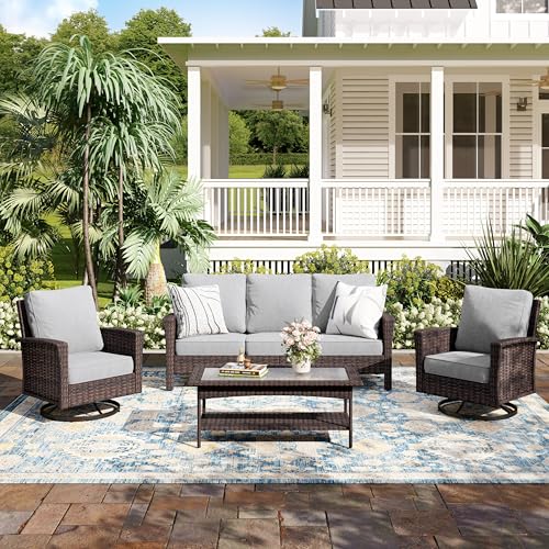 Versatile Configuration: This 4-piece wicker patio furniture set offers endless possibilities for customization. Arrange the swivel chairs, 3-seat sofa, and coffee table in various configurations to suit your outdoor space