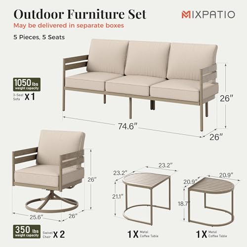 ?All-Weather Durability?Constructed with rust-resistant galvanized steel frames and electrophoretic coating for superior corrosion protection, built to withstand outdoor conditions. The oil-, water-, and stain-resistant Olefin fabric cushions resist fading, rain, and daily wear. Sturdy construction supports heavy use (350 lbs per seat, 30kg for coffee tables), ensuring long-lasting reliability