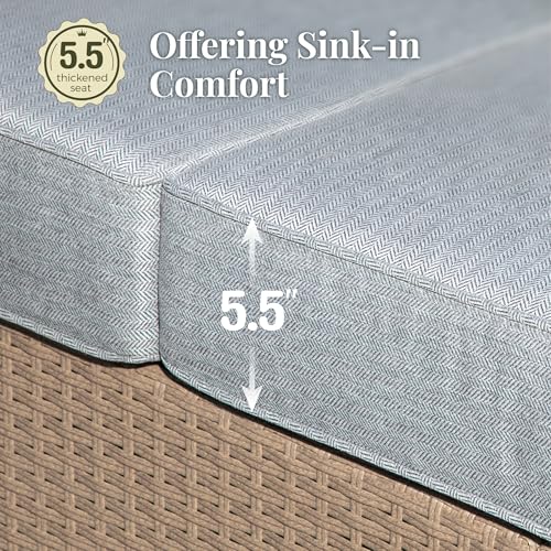 Strongly Constructed for Longevity: Sturdy iron plate seat panels offer superior support compared to rattan seat panels, ensuring a super-safe sitting experience on this sofa set. Each seat can support approximately 300 lbs. The widened triple-strand arched armrests add a stylish dimension, while adjustable foot pads guarantee stability even on uneven surfaces