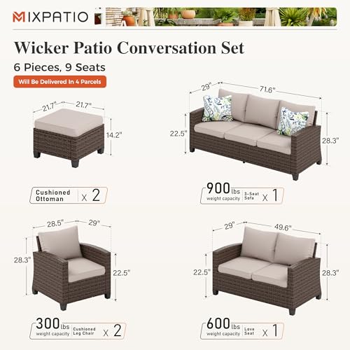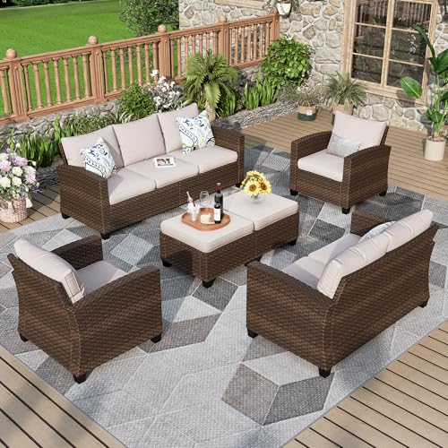 ?OUTDOOR FURNITURE SET?Including 2 x single chairs, 2 x ottomans, 1 x 3 seater couch, 1 x 2-Seat Lover Sofa. Perfectly fitting with your backyard, poolside, porch, garden, and deck to create an outdoor comfort zone for you