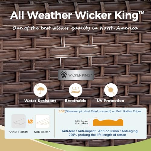?ALL WEATHER WICKER KINGTM?Made of high-quality, weather-resistant PE rattan, ensuring they remain in pristine condition even after exposure to rain, moisture, or intense sun exposure. Anti soiling, easy to maitain, UV resistant. Perfectly for year-round outdoor use. The single chair could support up to 300 lbs weight and the 3-seater sofa supports 900 lbs