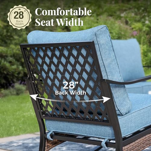 ALL-WEATHER RESISTANT: This outdoor furniture set is made from weather-resistant materials that can withstand various weather conditions. The powder-coated steel frame and UV-resistant rattan ensure that the furniture remains rust-proof and fade-resistant, making it making it perfect for outdoor use throughout the year