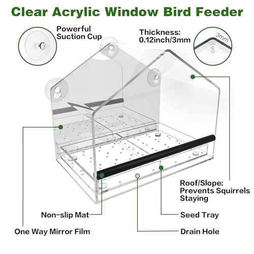 ?Fun for Bird Lovers?: Whether teaching kids about birds, helping older parents relieve loneliness, or entertaining cats, or as a gift for bird lover friends, this window bird feeder will be a great help choose.