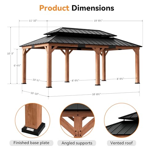 [Spacious Design for Socializing] The generous 12' x 20' interior comfortably accommodates 7-18 people, offering ample space for family and friends to relax under the wood grill gazebo. Ideal for patios, backyards, and decks.