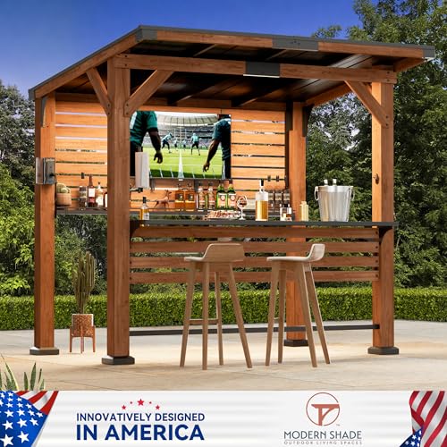 [Endless entertainment features] Equipped with convenient shelves, Built-in TV Mount, Power Strips with standard outlets and USB charging ports, a built-in bottle opener, and a paper towel holder, this entertainment gazebo offers you a one-stop solution to meet all your endless outdoor entertainment imaginations.