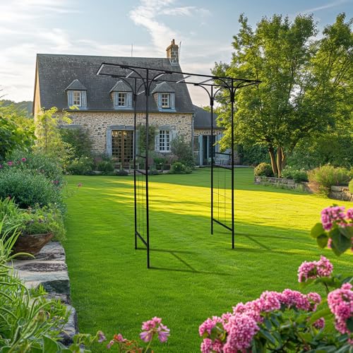 Durable Construction?Crafted from sturdy metal and finished in a weather-resistant dark hue, this arch is engineered to stand firm against the elements and last through the seasons.