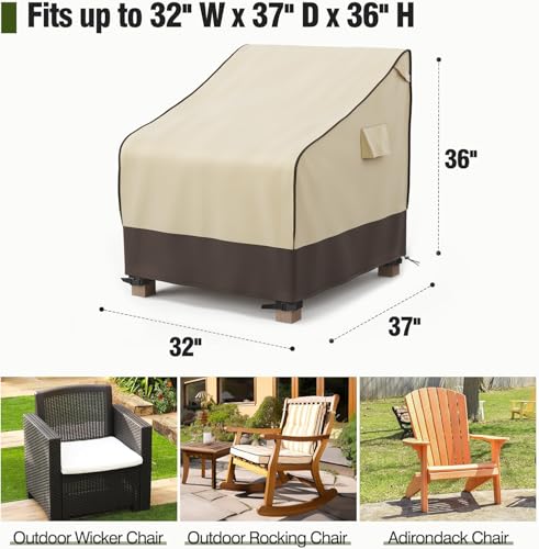 ?Universal Fit? Fits up to 32"W x 37"D x 36"H outdoor rocking, Adirondack, wicker chairs. Please measure the dimensions of your chair and choose the cover 1-2 inches larger than your furniture size before purchasing.