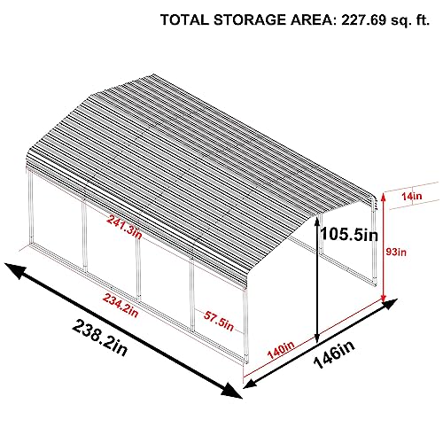 Weather Resistant: Designed to withstand harsh weather condition, this metal carport is highly resistant to corrosion. The galvanized steel roof provides excellent sun protection, ensuring your cars stay cool and dry.