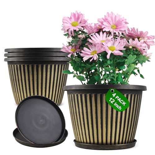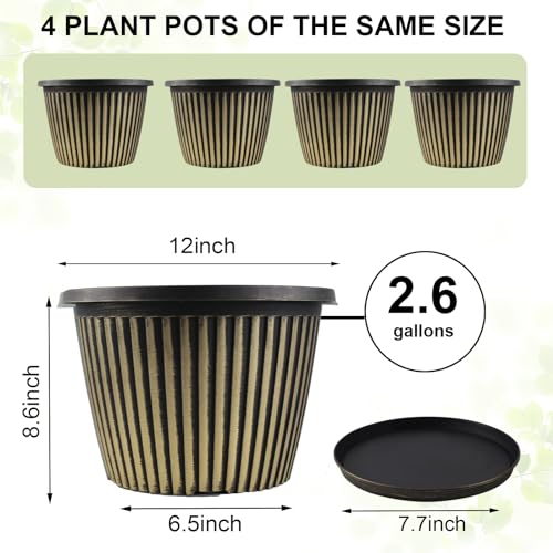 ?Perfect Size & sturdy Material?Top diameter: 12 inch, bottom diameter: 7.8 inch, height: 8.2 inch, capacity: 2.6 gallon. Large plastic plant pots are made of recyclable polypropylene resin which is lightweight but sturdy, not easy crack. These indoor outdoor planters are UV and weather resistant. 12 inch flower pot is perfect for planting medium to large sized plants.