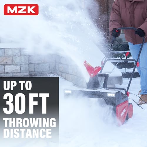 EFFICIENT SNOW REMOVAL: With a 23" clearing width, 13" snow depth, and a 30'' throwing distance, MZK snow blower tackles snow with ease, clearing your driveway or sidewalk in no time.