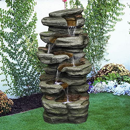 RELAXATION AMBIANCE: 6-tiers cascading fountain has built-in 5 led light. Each tier has a led light except the top. adding peaceful ambiance to your outdoor setting. When darkness fall,the cascading waterfall turns into a beautiful decoration in your yard.