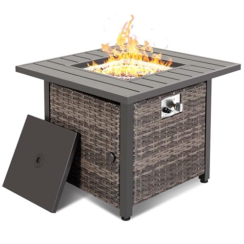 Easy Replacement: The outdoor fire pit table features a magnetic door handle and an adjustable fixing holder for easy cylinder replacement, ensuring convenient access. Metal base can hold a standard 20 lbs propane cylinder (not included).
