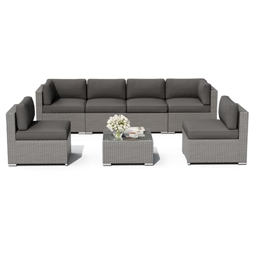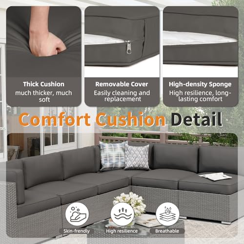 ?Comfortable cushions ?The 3-4 inch thick cushions are made of combinations of high density sponges and cushion covers made of high quality staple fiber. Comfortable and hard to fade. Cushion covers remove with zips, and easy to clean!