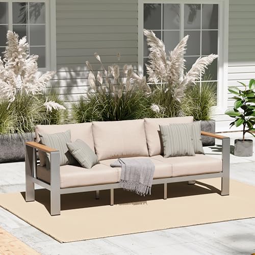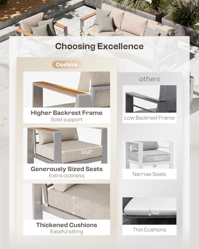 ?Premium Materials? The patio furniture features a superior aluminum frame with a anodized finish for enhanced durability and stability, and water-resistant olefin cushions for easy maintenance and long-lasting outdoor use.