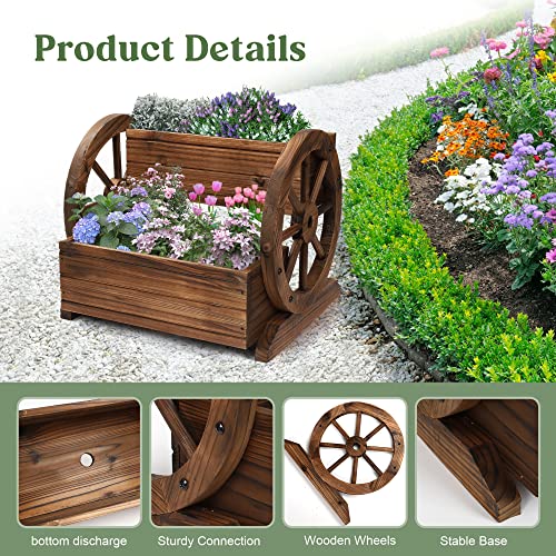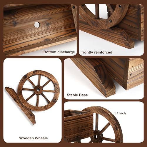 OIPRTGFJ Wooden Wagon Planter Box, Garden Planter with Wheels,Decorative Flower Planter for Flowers Herbs Vegetables for Indoor & Outdoor Decor,Wooden Flower Cart for Patio Garden Balcony