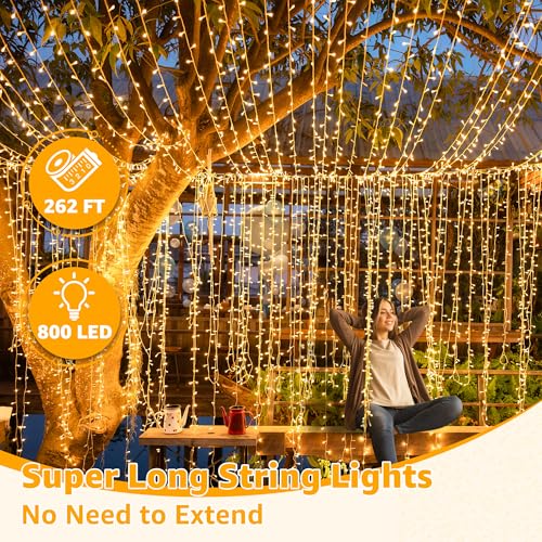 Super Long Christmas Lights: Total Length: 800LED/272FT, String lights Length: 262FT, extension cord Length: 10FT. Long enough, one set of led Christmas lights can meet your need to decor every corner of your house. No need to extend