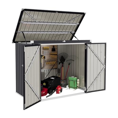 Sturdy & Durable: Constructed from galvanized steel with a black powder coat finish, this storage shed is robust and durable enough for long-term use. It is also resistant to harsh weather conditions such as rain, wind, and snow. The use of color-coated sheets ensures that this product remains corrosion-resistant. It is ideal for outdoor applications including pools, gardens, and lawns.