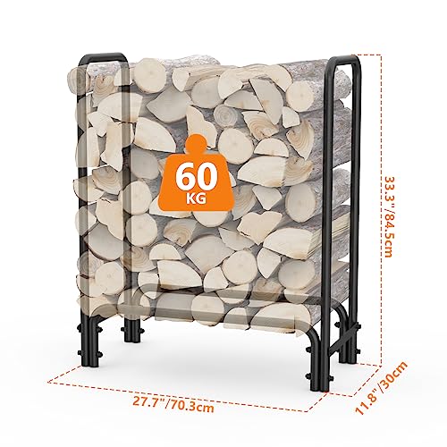?Dimensions?This firewood rack measures about 27.7"L× 11.8"D ×33.3"H, 4 Feet. Holds ups to 130 pounds firewood.