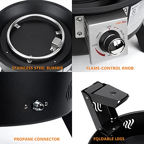 ?Easy to Assemble & Height Adjustable? - This gas fire stove is easy to set up in minutes with no additional installation tools. Simply attach the 3 foldable and adjustable height legs and make the propane fire pit more stable. The supporting legs of the fire pit can be folded twice, meaning you can choose two heights to suit different usage scenarios and meet the needs of different people. All weather outdoor fire pit is ready to create warm and smokeless bonfire atmosphere.