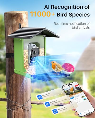 AI Bird Recognition, Real-time Notification: The OPOWO smart bird feeder with camera automatically captures and identifies over 11,000 bird species, recording videos of all visiting birds. Through the app, you will receive instant notifications to observe these bird buddies, enhancing your birdwatching experience. No need for binoculars; enjoy a new way of birdwatching!