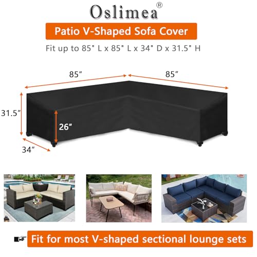 Size: 85"L (on each side) x 34"D x 31.5"H, fit for most V-shaped sectional lounge sets. Pls measure your sofa size before purchasing