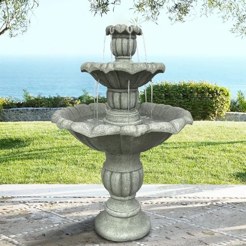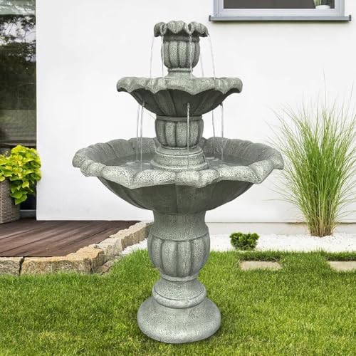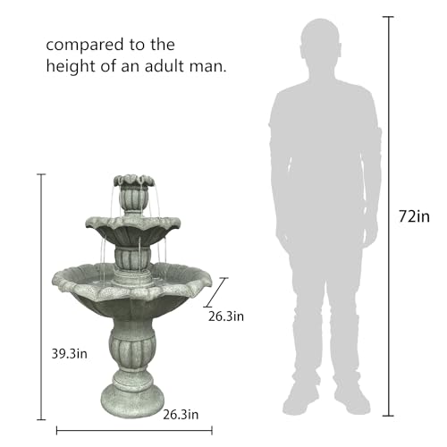 [IDEAL SIZE] Enhance your garden with the exquisite 3-tier garden fountain, measuring a generous 26.3" in diameter x 39.3" in height and weighing 64 lbs. This sturdy fountain won't tip over in outdoor settings. The natural feel and stone-like appearance of this fountain seamlessly blend with your garden, complementing both natural landscapes and classical architectural styles. It's an essential addition to your outdoor oasis.