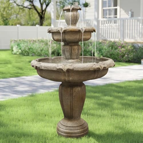 [IDEAL SIZE] Enhance your garden with the exquisite 3-tier garden fountain, measuring a generous 30.7" in diameter x 48" in height and weighing 98 lbs. This sturdy fountain won't tip over in outdoor settings. The natural feel and stone-like appearance of this fountain seamlessly blend with your garden, complementing both natural landscapes and classical architectural styles. It's an essential addition to your outdoor oasis.