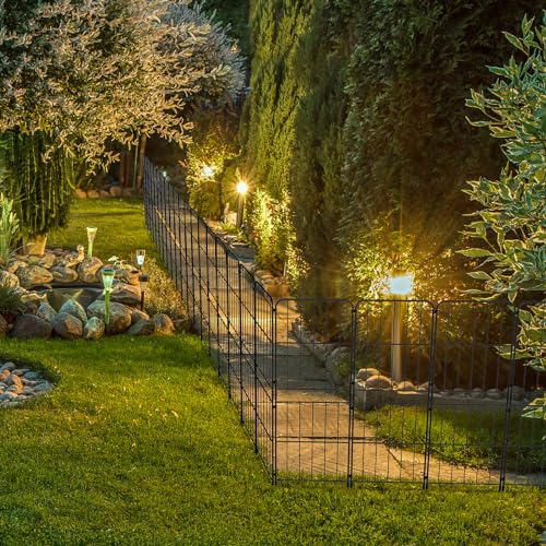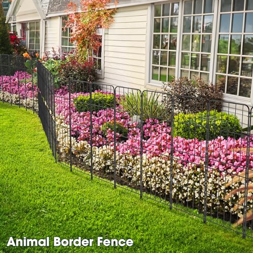 Dimension: The height of each piece of the decorative garden fence is 38 inch(6'' stakes in soil) and the width is 12.5 inch, with a total of 10 panels. It's 10 feet long to connect all of them.