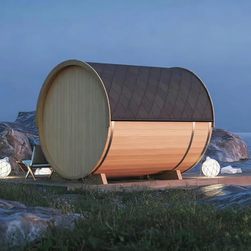 ?Efficient Heating?:Our barrel finnish sauna equipped with a powerful wood burning sauna heater, requiring zero electricity, heating capacity is equivalent to 9-15 kW electric heater. Heating the stones in the furnace by igniting the heat generated by the burning wood, it also makes the sauna experience more primitive and immersive, heavy-duty cast iron construction for extended use. Includes full accessory kit (steel firebox, tools,chimney kit,ash drawer)