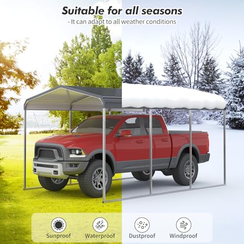 All-Weather Protection: This metal carport is built to endure rain, snow, wind, and harsh weather, offering reliable protection for your car, truck, boats, and tractors. Embedded waterproof tape and screws prevent rainwater entry, ensuring long-lasting durability against the elements.