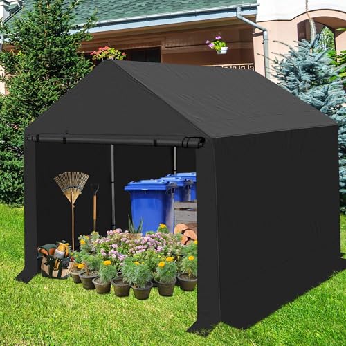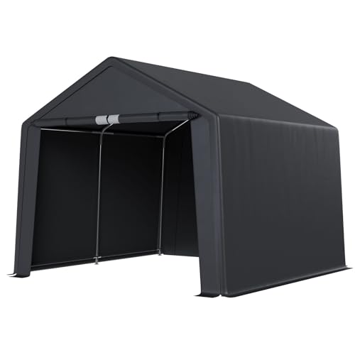 [Sturdy Heavy Duty Metal Frame] This heavy-duty all-weather canopy storage shed is made of 1.2 mm thickened rust-proof galvanized steel with a diameter of 1-1/2 inches, which is praised for its stability, sturdiness and safety, and can withstand high winds, heavy rain, severe cold, hot sun and other harsh weather.The steel pipe is reinforced and connected with multiple pieces of steel, and there are four additional steel tubes on both sides to prevent the structure from twisting