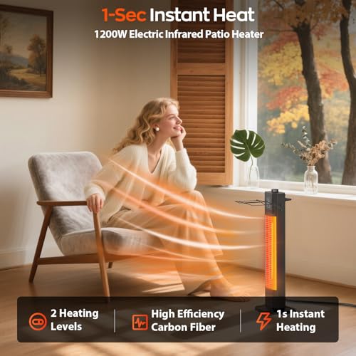Sun-Like Radiant Warmth – Advanced infrared heater technology delivers warmth that envelops people and objects like sunlight, heating up instantly. Provides rapid, targeted comfort while with no dry, keeping the air moist and cozy. Perfect for patios, balconies, decks, garages, living rooms, and offices.