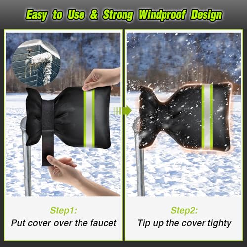 ?Great Value and Practical Winter Christmas Gift?:You will receive 2 pack black faucet guard socks, enough for the whole winter. the outdoor faucet anti-freeze cover set is an affordable and necessary solution to winter frost protection.The wonderful solution for winter faucets to protect them from harsh winter weather while also helping to save on expensive plumbing repairs, making a great gift for friends and neighbors with homes and gardens.