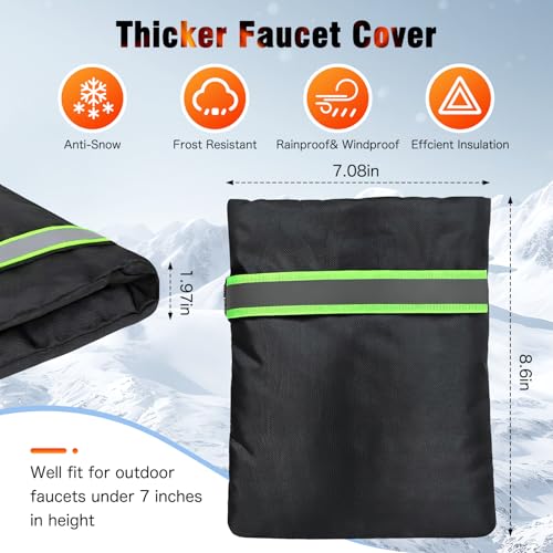 ?Perfect size?Upgrade and thicken outdoor faucet covers for winter measures 8.5" H x 6.1" W. Larger size than other similar winter faucet protectors.Suitable for most types of faucets, such as garden faucets, taps, water pipes, water hose bibs.