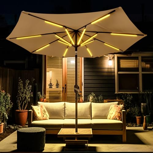 1000 lumens: 16 LED tubes emit 1000 lumens of warm 2700K light, making this umbrella light 10x brighter than solar or battery operated umbrella lights for enhanced patio ambiance. Ideal for dining and reading.