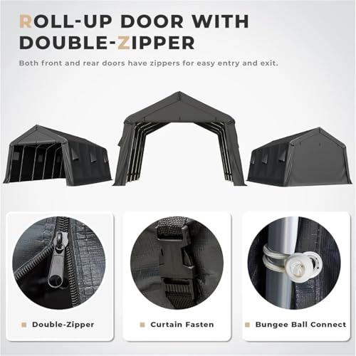 The13x20 portable garage top is designed with a Peak Style shape which avoids standing water and snow and increases the service life of the car garage