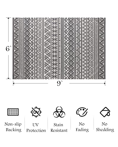 Outdoor Rug Carpet 6x9 ft, Flatweave Textured Outdoor Patio Rug Non Slip Indoor Outdoor Rugs with Rubber Particles Backing Boho Outdoor Area Rug for Patio Deck Front Porch Backyard Balcony