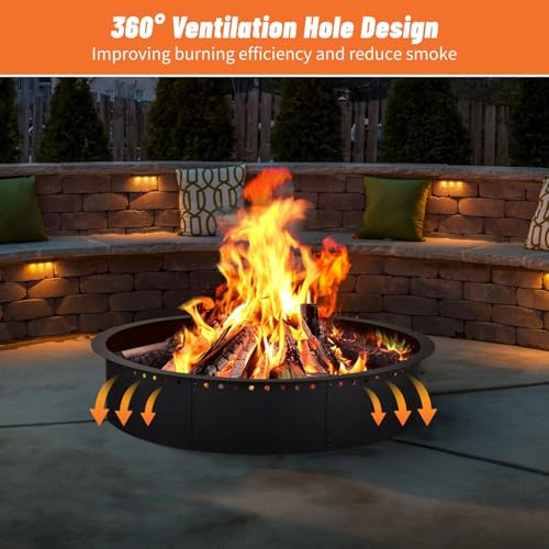?Enhanced Ventilation for Efficient Burning?- Designed with a top circle of ventilation holes, this smokeless fire pit ring maximizes airflow and oxygen circulation, promoting efficient wood combustion while minimizing smoke. Enjoy a cleaner, more enjoyable fire pit experience with family and friends, creating lasting memories around the flames.