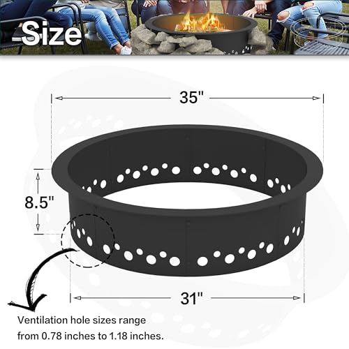 Perfect Size for Versatile Use: With a 35-inch outer diameter and a 31-inch inner diameter, this metal fire pit ring liner offers ample space for wood burning, making it the perfect fire ring for outside fire pit use. Whether you're planning a backyard bonfire, camping trip, or a cozy gathering, this smokeless fire pit ring provides a spacious area to keep your outdoor fire warm and welcoming. Its size is perfect for those looking for wood fire pits for outside